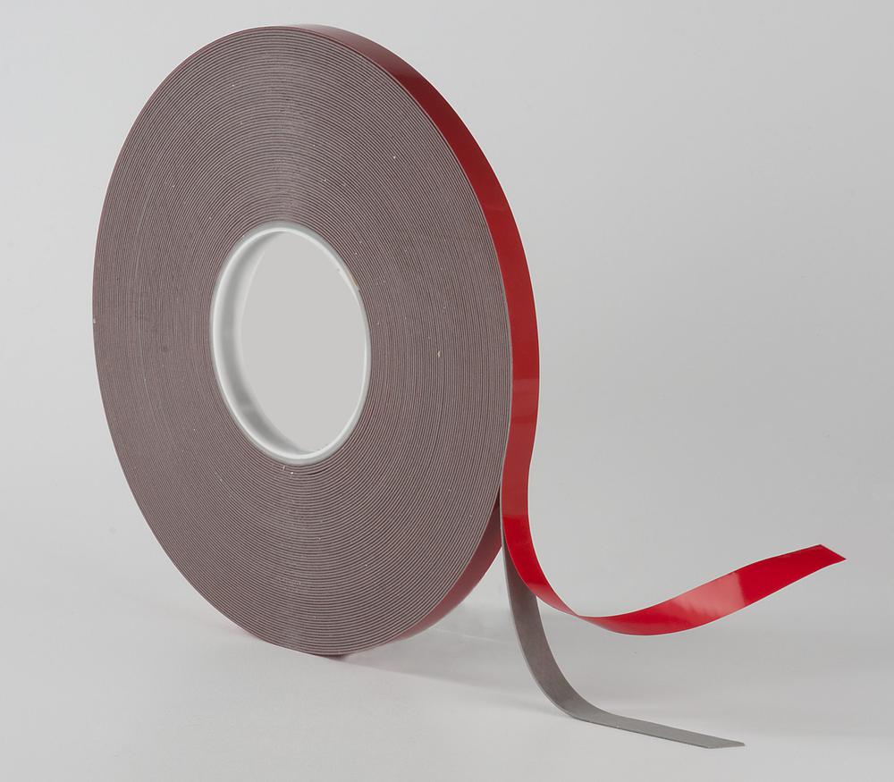 Cinta Doble Faz de Espuma Acrílica Color Gris de 0,8 mm de espesor con adhesivo Acrílico. Para montaje de emblemas en la industria automotriz, como así también en aplicaciones donde se requiera una muy alta Adhesión Puede ser utilizada tanto para interiores y exteriores.