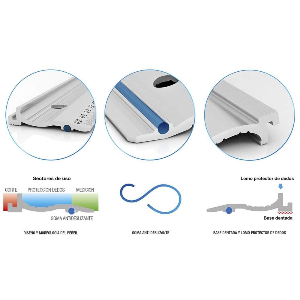 Regla de Aluminio De Corte 30 cm. Lográ cortes exactos en cualquier material protegiendo tus manos. Super resistentes y con sistema antideslizante inferior.