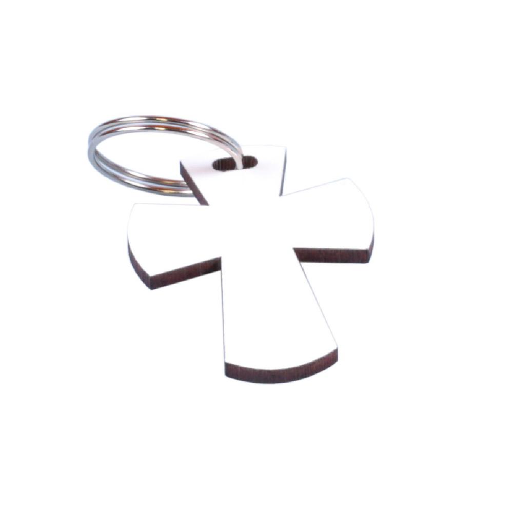 Llavero Cruz sublimable con argolla metálica.